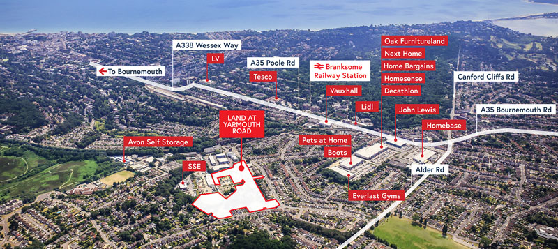 We understand the site measures 9.49 acres (3.84 ha) and is situated in Branksome, a mixed use suburb of Poole. Consideration for part of the site would be considered, with opportunity for boundary’s throughout the site.